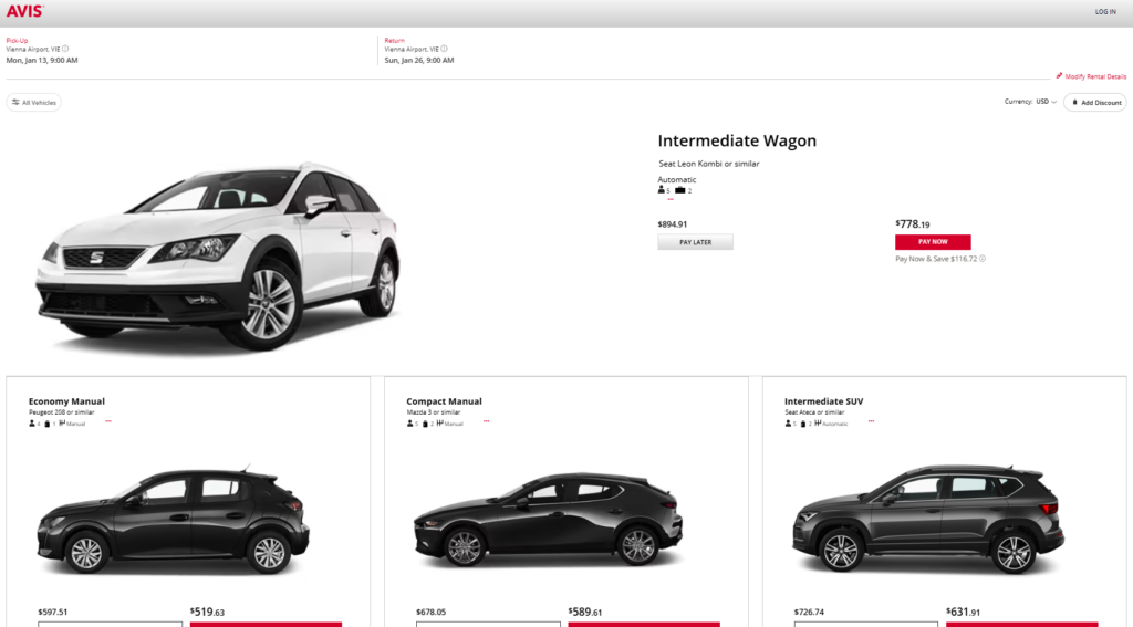上圖顯示瑞士的COST OF LIVING INDEX 是114.2而斯洛佛克的指數只是44.2,大概意思是你在斯洛佛克買一件東西要44.2元,你到瑞士買同樣的東西就要114.2元,價格接近三倍!即使不拿最極端的例子,以鄰近的國家為例,奧地利(66)跟斯洛佛克(44.2)都差近50%當然每樣產品的價差都不一樣,但這種差異不只反映在日常生活,也直接影響租車價格,假設你租兩個星期車,在斯洛佛克租要10000,在奧地利租就要15000,當然租車的價格不一定直接乘指數。但我們可看看下面的實質例子。