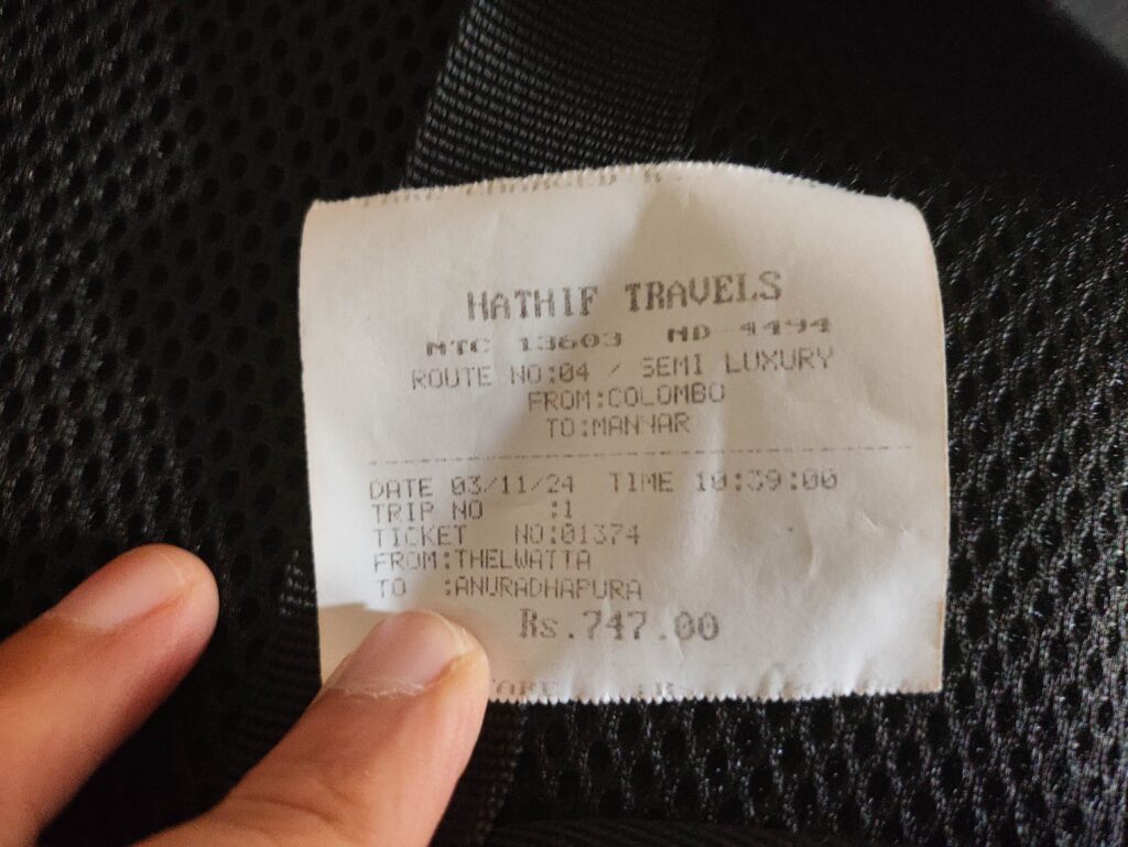 Check out的時候民宿老闆帶我到Negombo Road 坐巴士,陪我等左半個鐘車,如果冇當地人,應該冇遊客可以上到車,因為巴士是不會停站的,就算係賣票員都會驚畀個司機留低左,而全車都係本地人,同埋好多時冇位坐,好彩我搵到位,但隔離企既人都會貼住你,這個旅行的方式,可能未必適合獨遊女生,幾個小時的車程,賣票員會問你要去邊,然後慢慢收錢,我由機場附近去Anuradhapura 都只係收Rs.737,即係唔過20港紙,期間有人上車賣野,如果你地都想試下坐巴士,可以在negembo road坐開往Jaffna 的04號巴士。