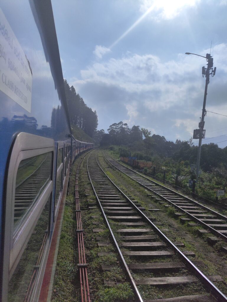 雖然坐到冷氣巴士,但係去到接近nuwara eliya 的時候,司機都關冷氣開窗,不過氣溫已相對變得清涼,這裡有很多不同的英國殖民地的色彩的設施,最有名的粉紅色郵局,維多利亞公園,golf club,皇家賽馬俱樂部,吃過午飯,再坐巴士到nanuoya,試試能否買到ella的火車票。1310到達火車站,但下一班車係1315開,只係得番一張first class,買完之後跑去上車,去到月台謹記要問一問當地人喺車頭定車尾上車,因為月台好多遊客,個個爭住上車,好混亂,預早搵好位,唔係就好似我咁要跑,火車係容許你伸出車外影相,唔係伸隻手出去,係成個人伸曬出去都得,當然自己要承擔風險,我都有體驗下這個獨特的火車體驗,其實火車沿途開得不快,所以我認為是安全的,依段鐵路被譽為世界最美高山茶園鐵路,沿途有多個壯麗的景觀,坐頭等的話,火車司機會沿途每一個景點都走到車廂大叫,話你聽左邊定右邊有靚景,車上又遇到好心的本地人,讓出景觀較漂亮的一側的窗邊。